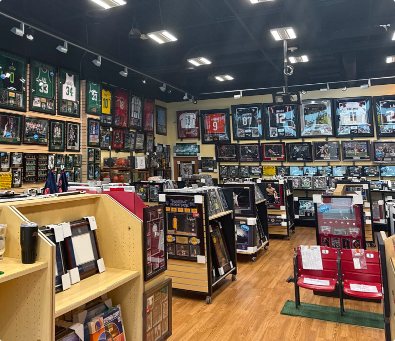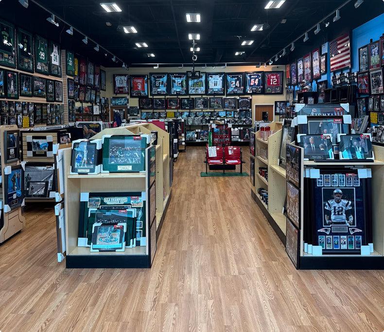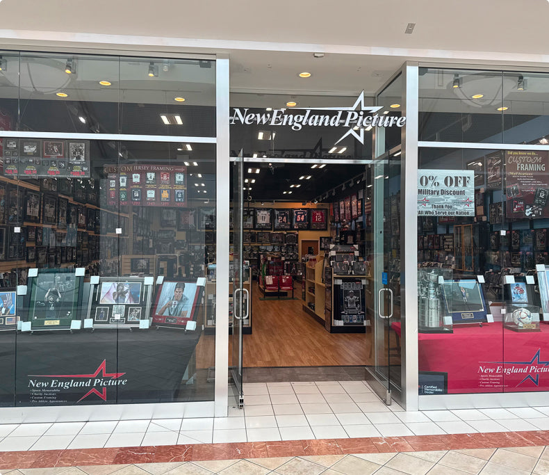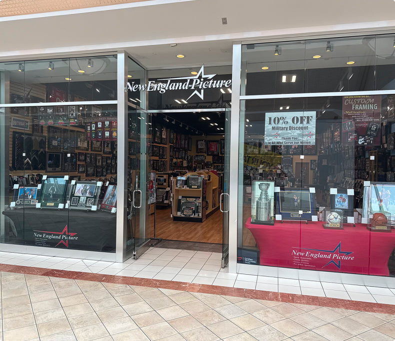 Visit us at the Mall of New Hampshire to discover an outstanding collection of sports memorabilia, signed collectibles, and one-of-a-kind artwork. Whether you're a die-hard fan or looking for a unique gift, our team is ready to help you find something unforgettable. Come experience the spirit of New England sports—right here in Manchester.