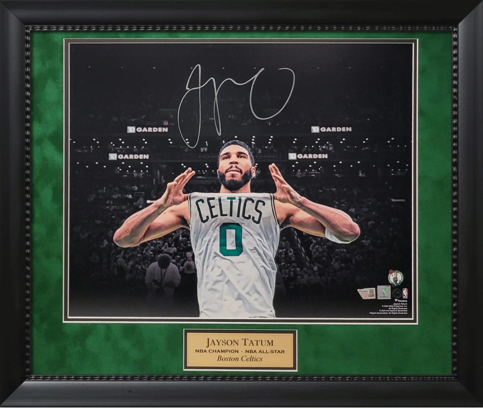 Jayson Tatum Autograph Photo Jersey Tug 23x27