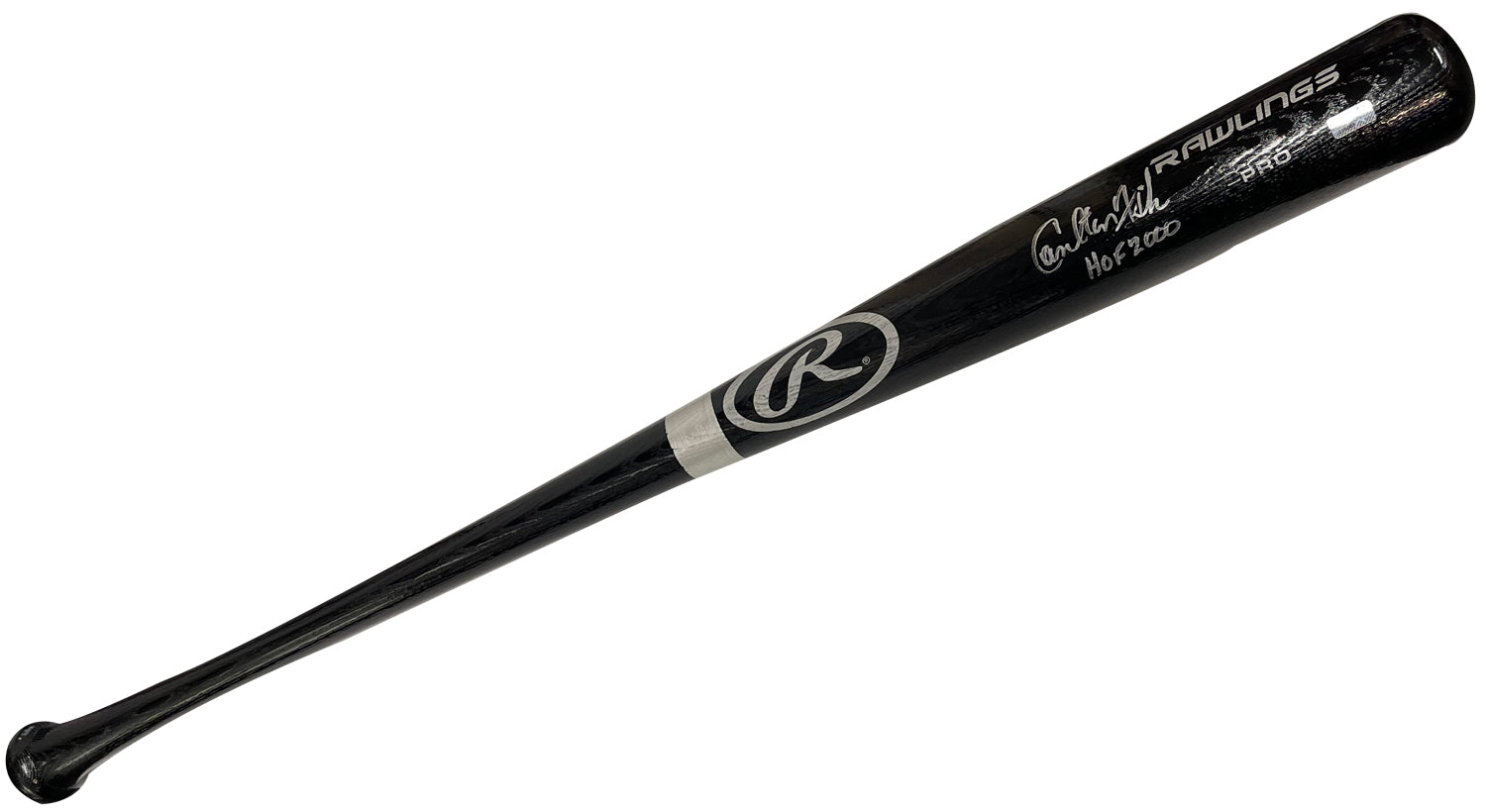 Carlton Fisk autograph black bat with HOF 2000 inscription, Boston Red Sox.