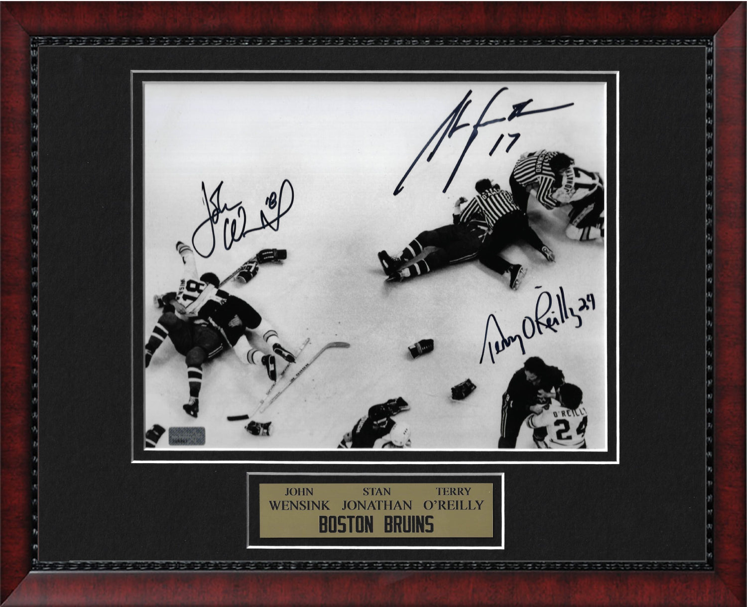 John Wensink Stan Jonathan Terry O'Reilly Triple Autograph Photo Ice Brawl 11x14