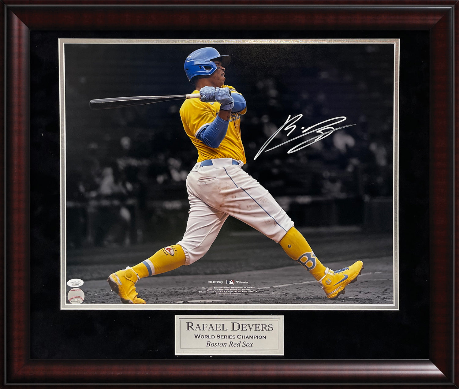 Rafael Devers Autograph Photo Yellow City Connect Uniform 23x27 New England Picture Authentication